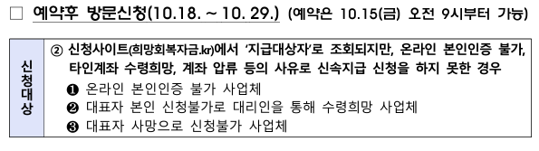 예약 방문신청 후 예약한 일자에 예약 장소를 직접 방문하여 희망회복자금 신청하면 됩니다.