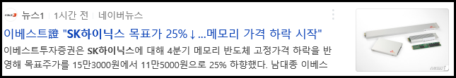 이베스트證 "SK하이닉스 목표가 25%↓…메모리 가격 하락 시작"