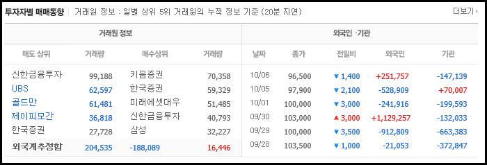 이날 시가는 96,300원이고 오전 한때 상한가 96,800원을 기록하기도 했습니다.
