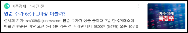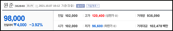 2021년 10월 7일 오늘은 원준 상장일입니다.