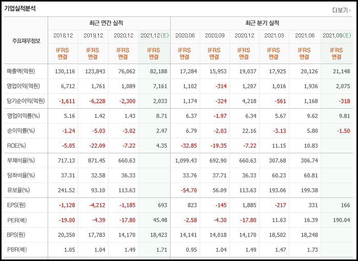 올해 예상 매출액은 8조 2,188억원 영업이익은 7,161억원 당기순이익은 2,033억원입니다.