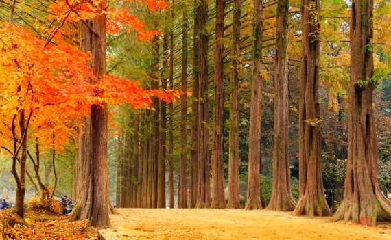 숲이 잘 조성되어 있는데, 남이섬의 트레이드마크인 메타세콰이어 길이 있어 사진 찍기에에 좋은 곳으로 꼽힙니다.