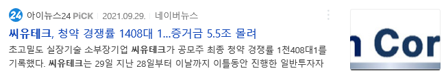 씨유테크, 청약 경쟁률 1408대 1…증거금 5.5조 몰려