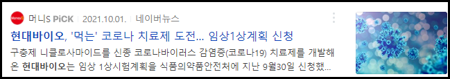 현대바이오 주가 6%↑...경구용 치료제 임상 1상 신청