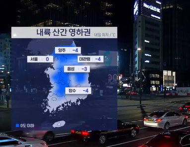 특히 일부 경기내륙은 0도 이하로 내려가고 바람도 강하게 불면서 체감온도는 더욱 낮아 추운 날씨가 되겠습니다.