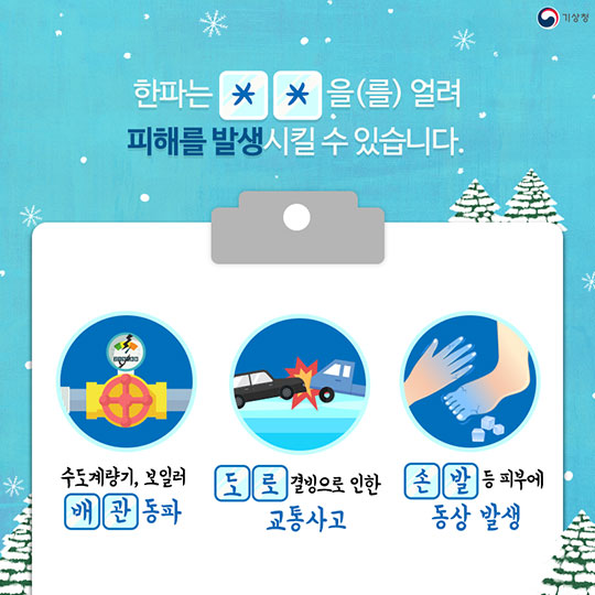 급격한 기온 하강으로 인한 면역력 저하 등 건강관리에 유의하고, 옷을 따뜻하게 입는 등 보온에 유의하시기 바랍니다.