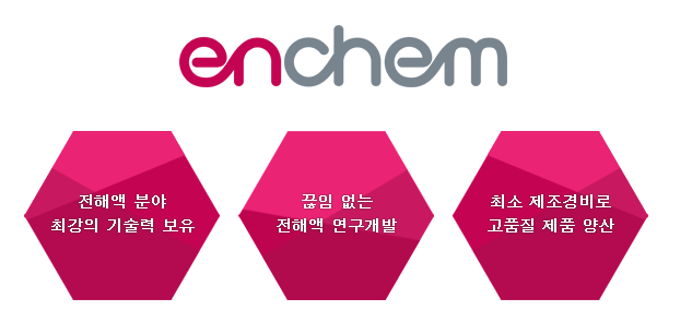 엔켐은 이차전지의 4대 핵심소재 중 하나인 전해액 전문기업입니다.