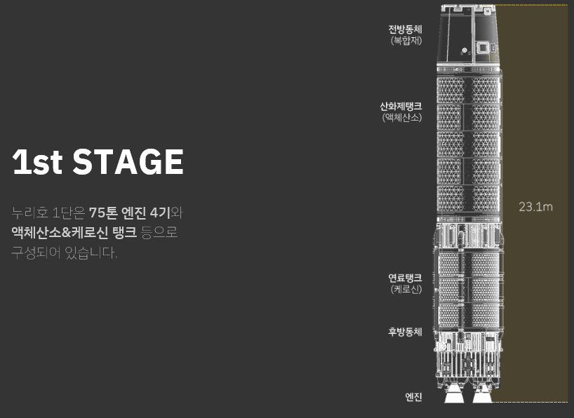 1단을 통째로 러시아에서 들여온 나로호와 달리 1~3단을 전부 국내 자체 기술로 제작된 것입니다.
