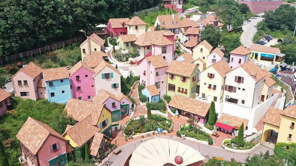경기도 가평에 위치한 쁘띠프랑스는 마치 알프스 산록의 전원마을 같은 건물외관이 눈길을 끌고 있습니다.