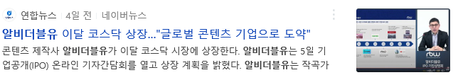 콘텐츠 제작사 알비더블유가 이달 코스닥 시장에 상장한다. 알비더블유는 5일 기업공개(IPO) 온라인 기자간담회를 열고 상장 계획을 밝혔다. 알비더블유는 작곡가 ...