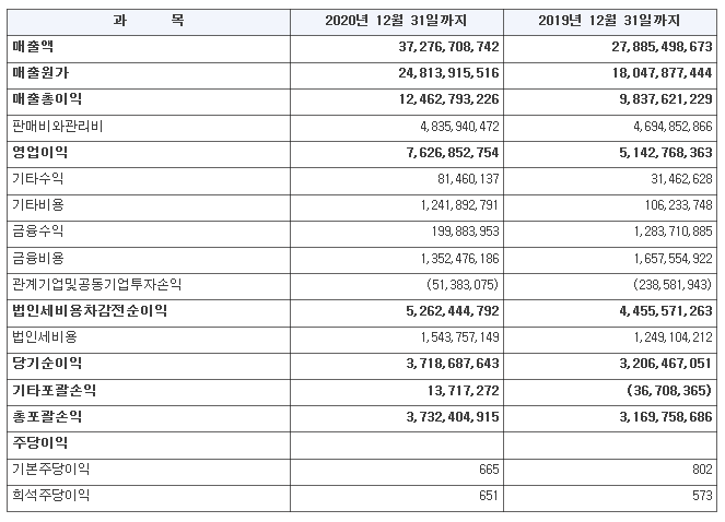 전체 실적에서 마마무가 차지하는 비중은 80% 이상을 차지합니다.