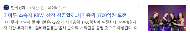 마마무의 소속사 알비더블유(RBW)가 이번 공모주 청약을 통해 시가총액 1700억원에 도전합니다.