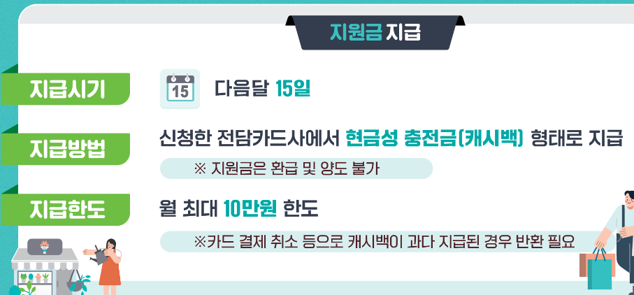 개인이 상생소비지원금 참여 신청 시 지정한 카드사를 통해 캐시백 형태로 지급됩니다.