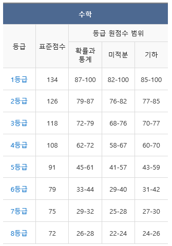 - 수학은 확률과 통계 선택 시 83~90점