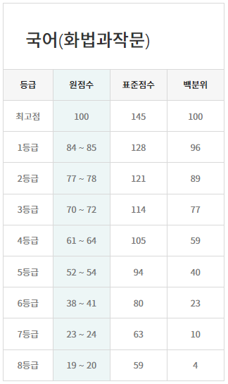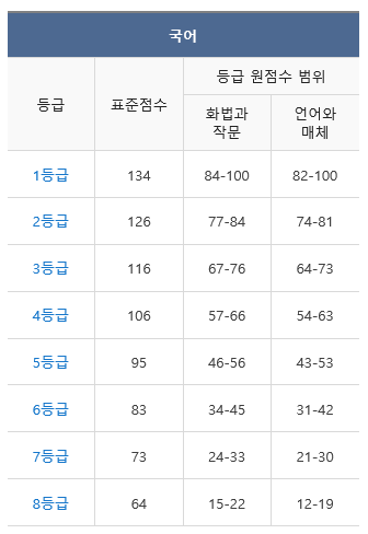 - 국어는 82~84점
