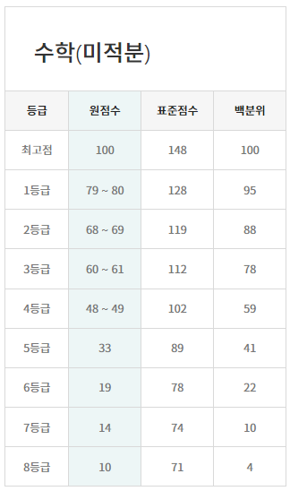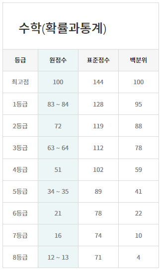 - 국어는 82~84점 - 수학은 확률과 통계 선택 시 83~90점 - 수학 미적분은 79~86점 |