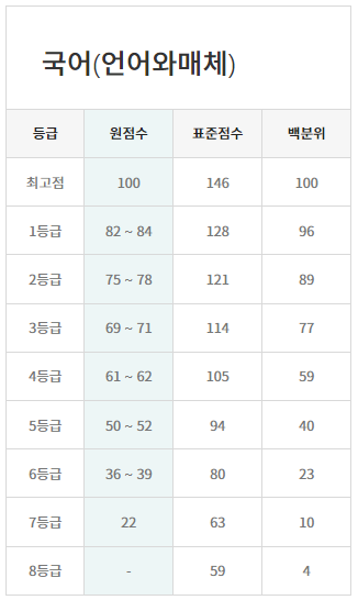 ▶ 1등급 예상 등급컷