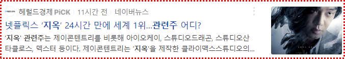 그럼 넷플릭스 드라마 지옥이 공개되고 큰 흥행을 이끌 경우 어떤 기업들이 관련주로 언급될지 알아보도록 하겠습니다.