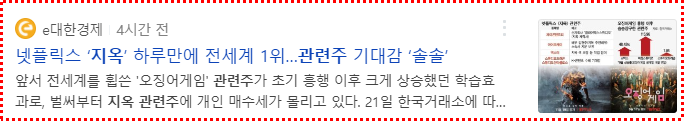 그럼 넷플릭스 드라마 지옥이 공개되고 큰 흥행을 이끌 경우 어떤 기업들이 관련주로 언급될지 알아보도록 하겠습니다.
