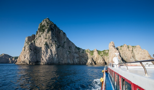 다른 섬에 상륙하지는 않고 유람선으로 거문도와 백도를 한 바퀴 돌면서 관람하는 코스입니다.