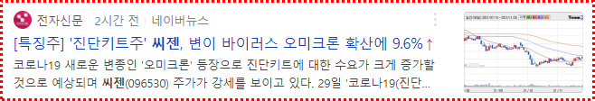 [특징주] '진단키트주' 씨젠, 변이 바이러스 오미크론 확산에 9.6%↑