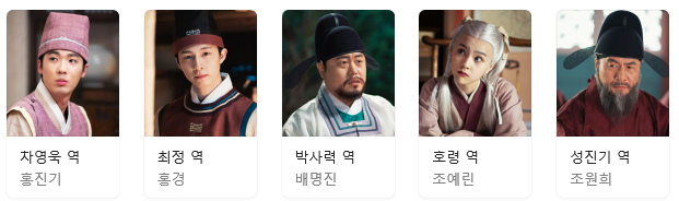 하람 역(안효섭) / 홍천기 역(김유정) / 양명대군(이율) 역 (공명) / 주향대군(이후) 역(곽시양 ) / 삼신(三神) 역 (문숙)