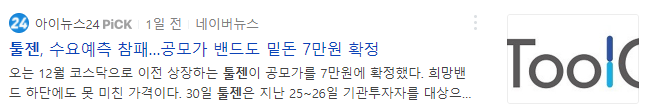 툴젠은 현재 영업이익 적자 기업으로 공모가 3년 치에 2024년 추정 순이익을 적용하였습니다. 이런 경우에 공모가의 적정성을 판단 내리기가 상당히 힘듭니다.