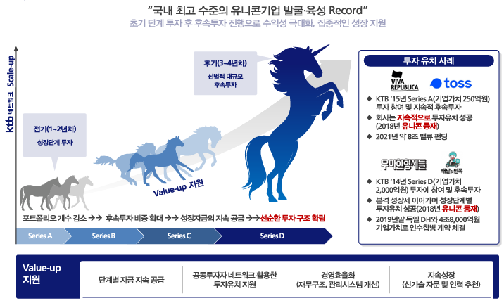 케이티비네트워크는 중소, 벤처기업에 대한 투자금융을 제공하는 벤처캐피털 회사로 창업 초기 기업투자 및 사모집합 투자기구 결성 및 운영을 주 사업으로 하고 있습니다.