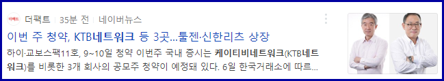 케이티비네트워크 공모주 청약일정